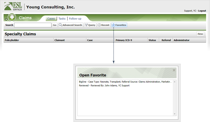 Favorite Specialty Claims Searches