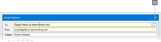 Who will receive the email. Edit or add recipients by clicking the button to the right and specifying the new recipients in the Select Email Recipients window.