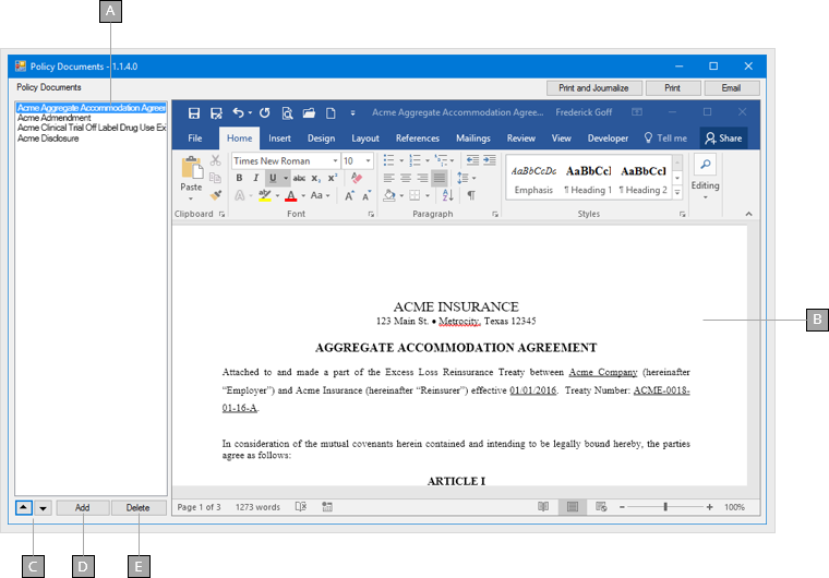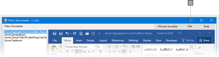 Click OK. The Policy Documents app launches Word and displays the selected policy sub-document in the Policy Documents window.