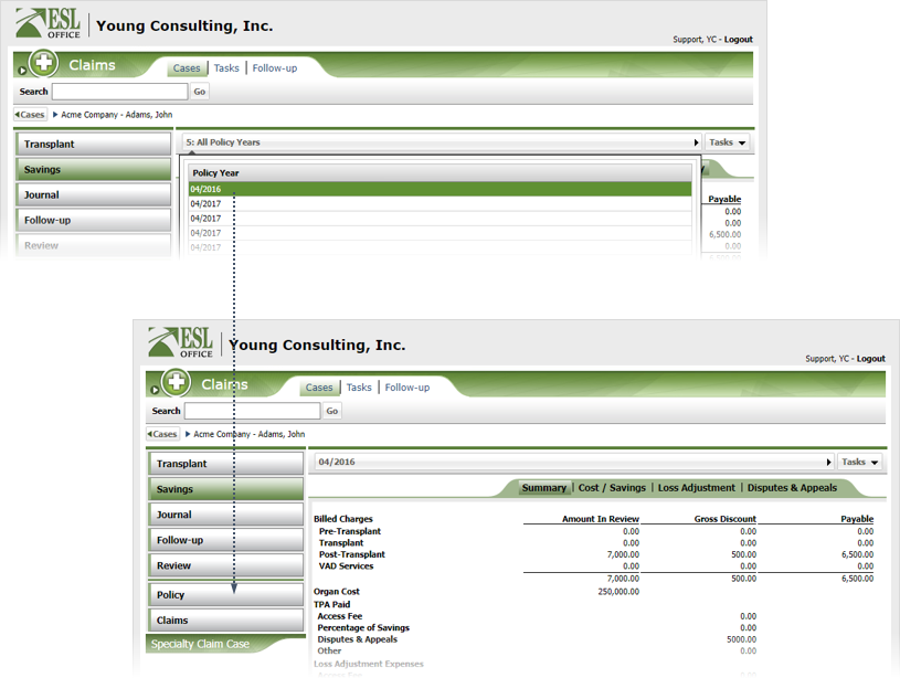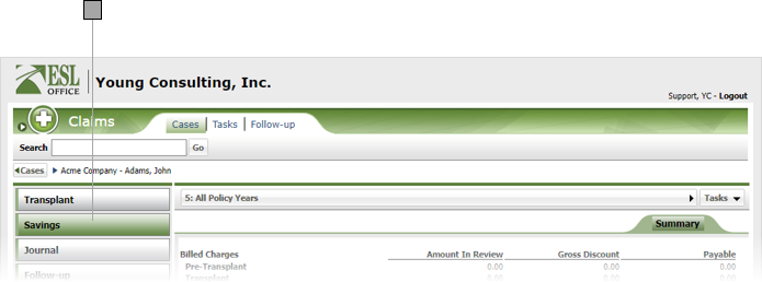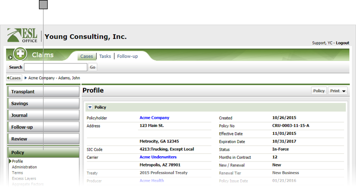 Click Policy. Note that the Policy button only appears after you have selected the Savings button if applicable to the case.